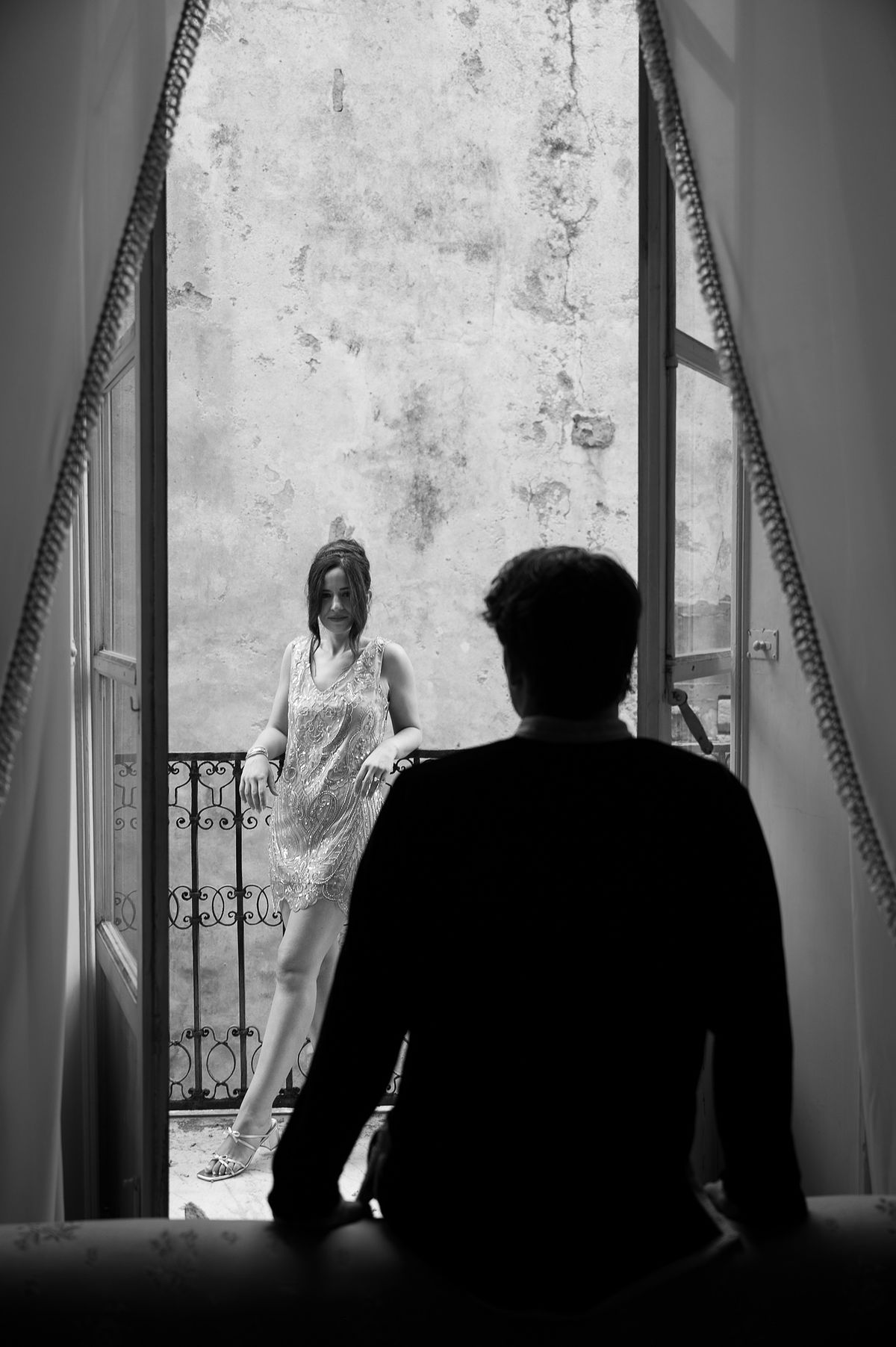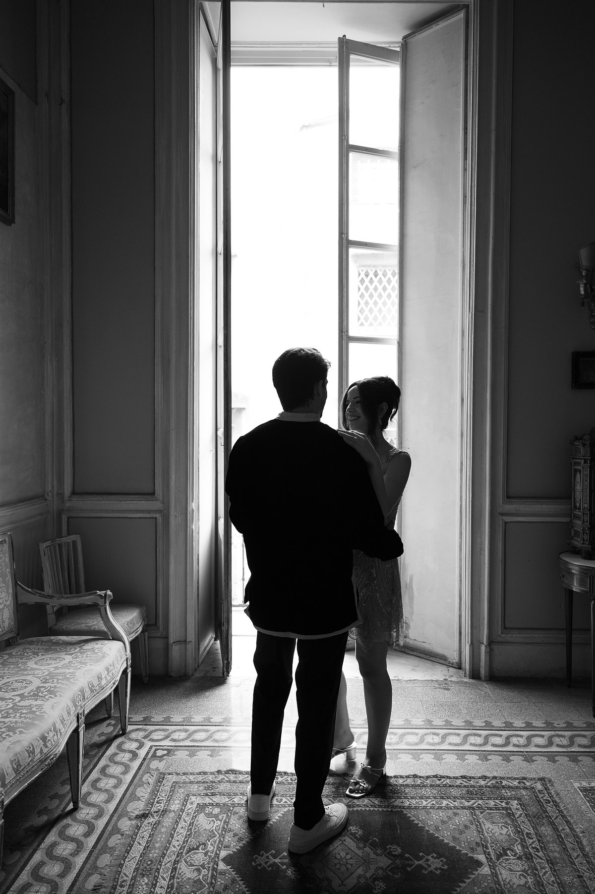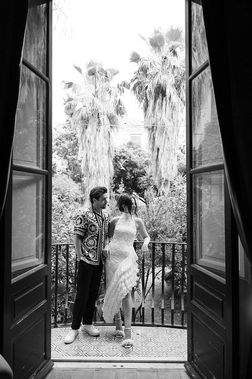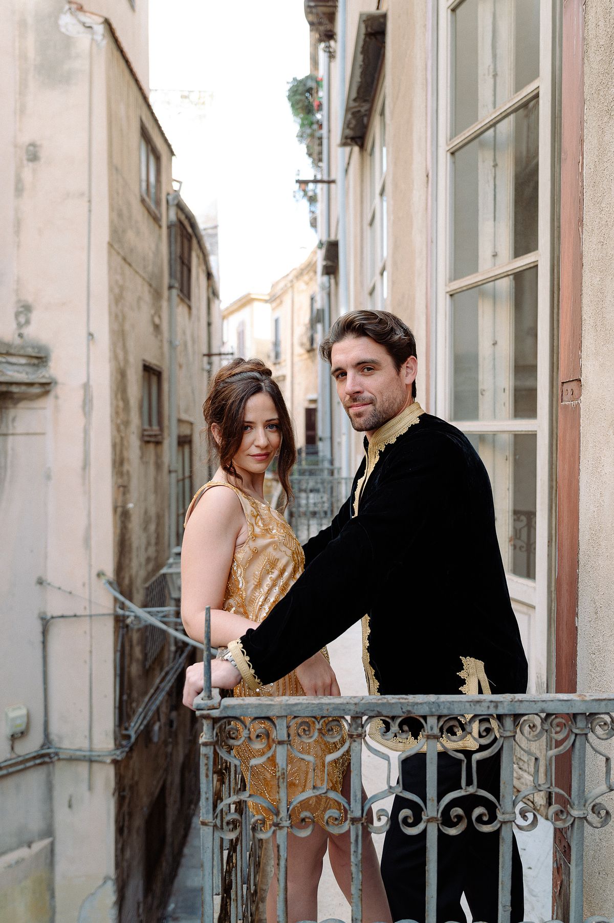 The couple chose a charming, secluded house with a hidden garden as the setting for their pre-wedding session. The garden, like many Italian spaces, was filled with vibrant greenery typical of Sicily - fragrant citrus trees, towering palms, and blooming bougainvillea that added a romantic touch to the scene.