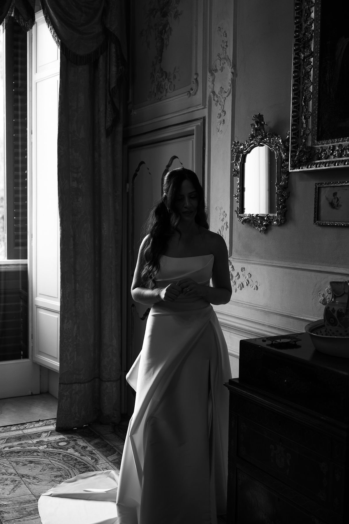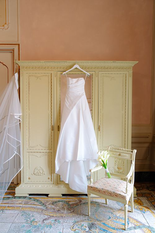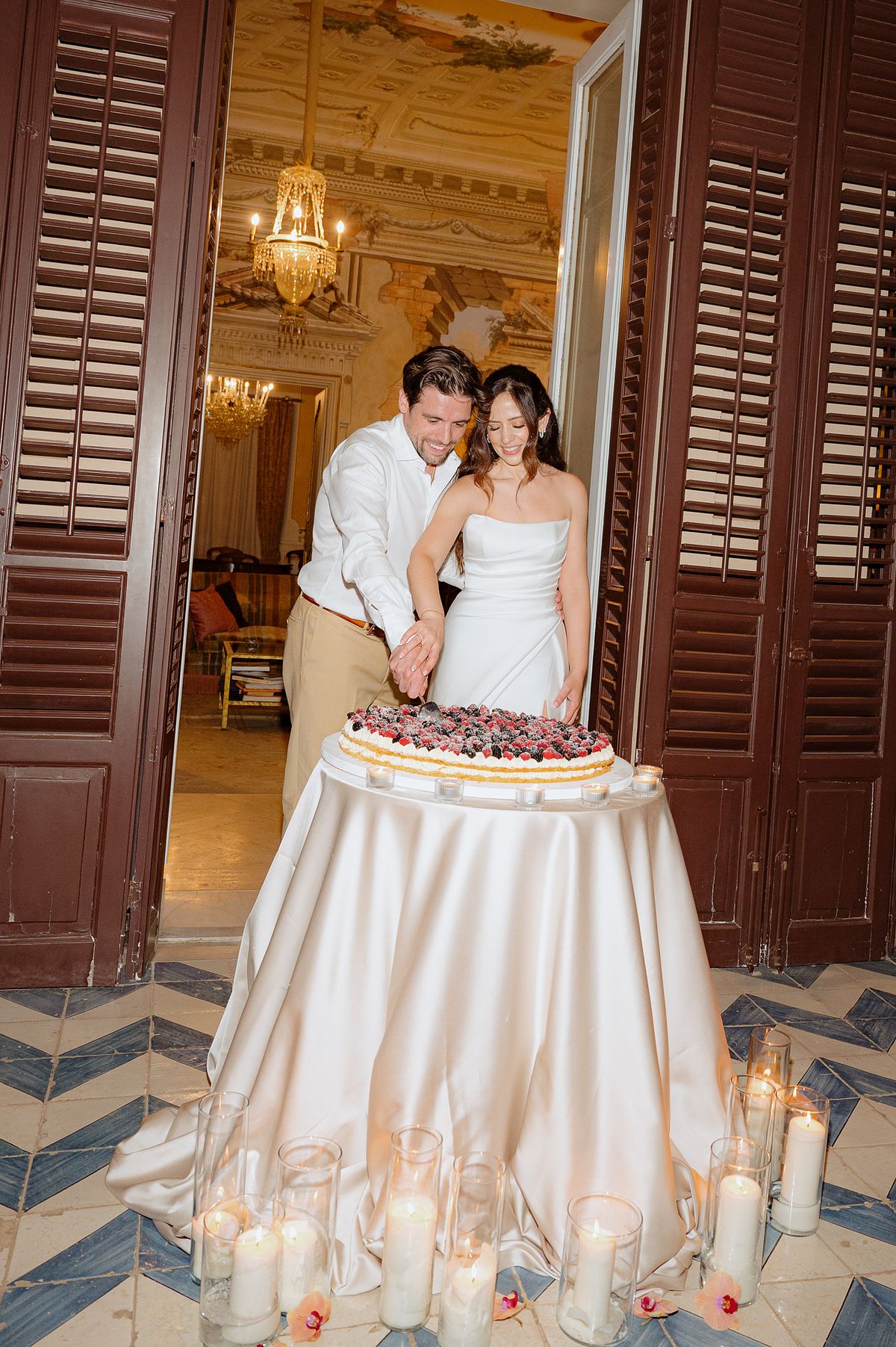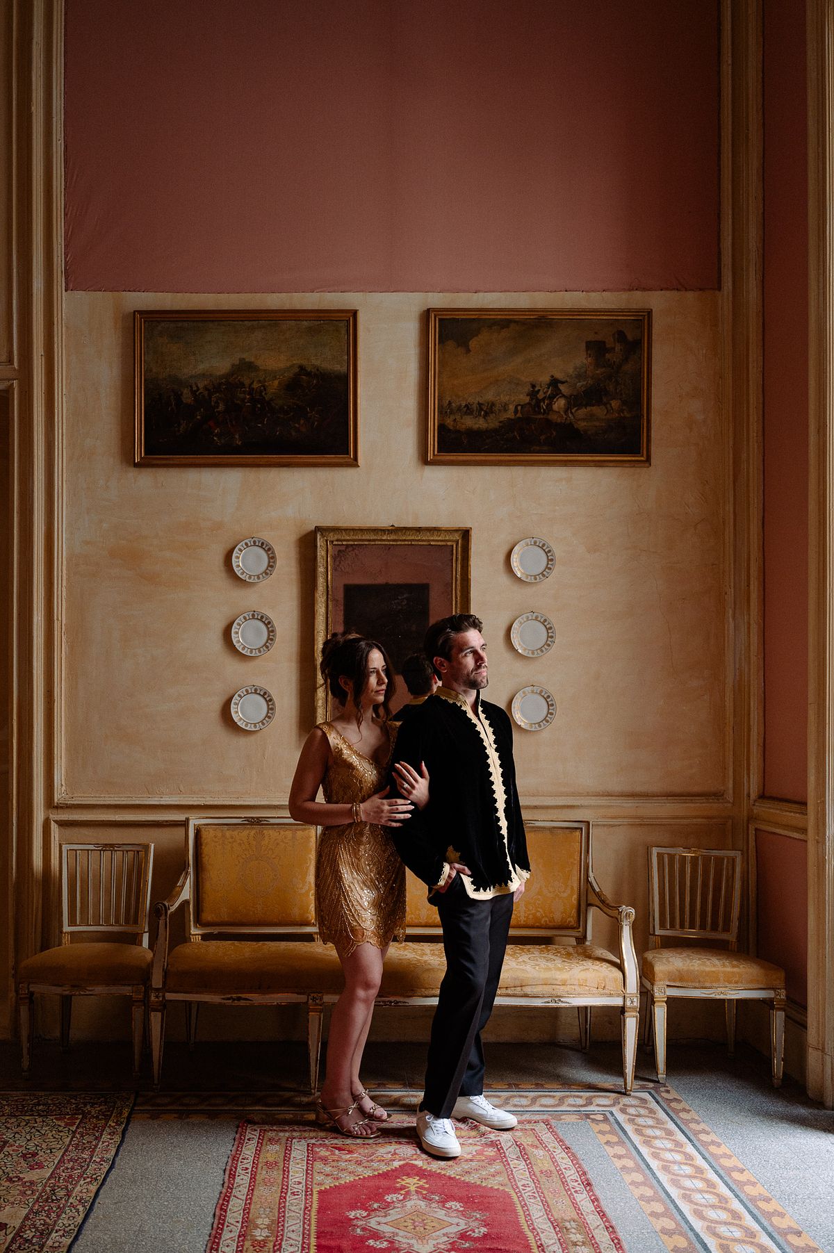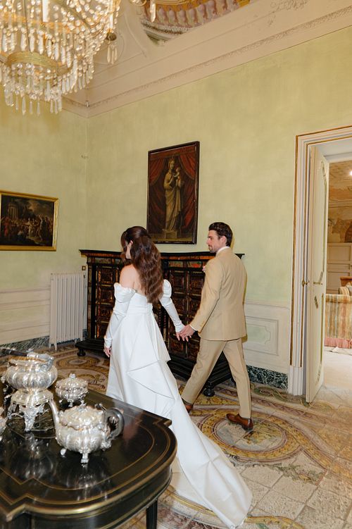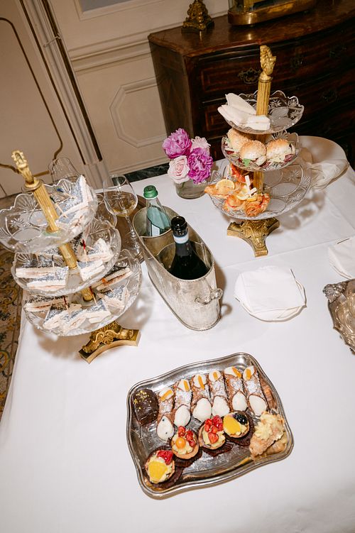 Their first portraits as a married couple were taken while guests enjoyed live music and Italian pastries, all as they prepared for the evening's dinner.