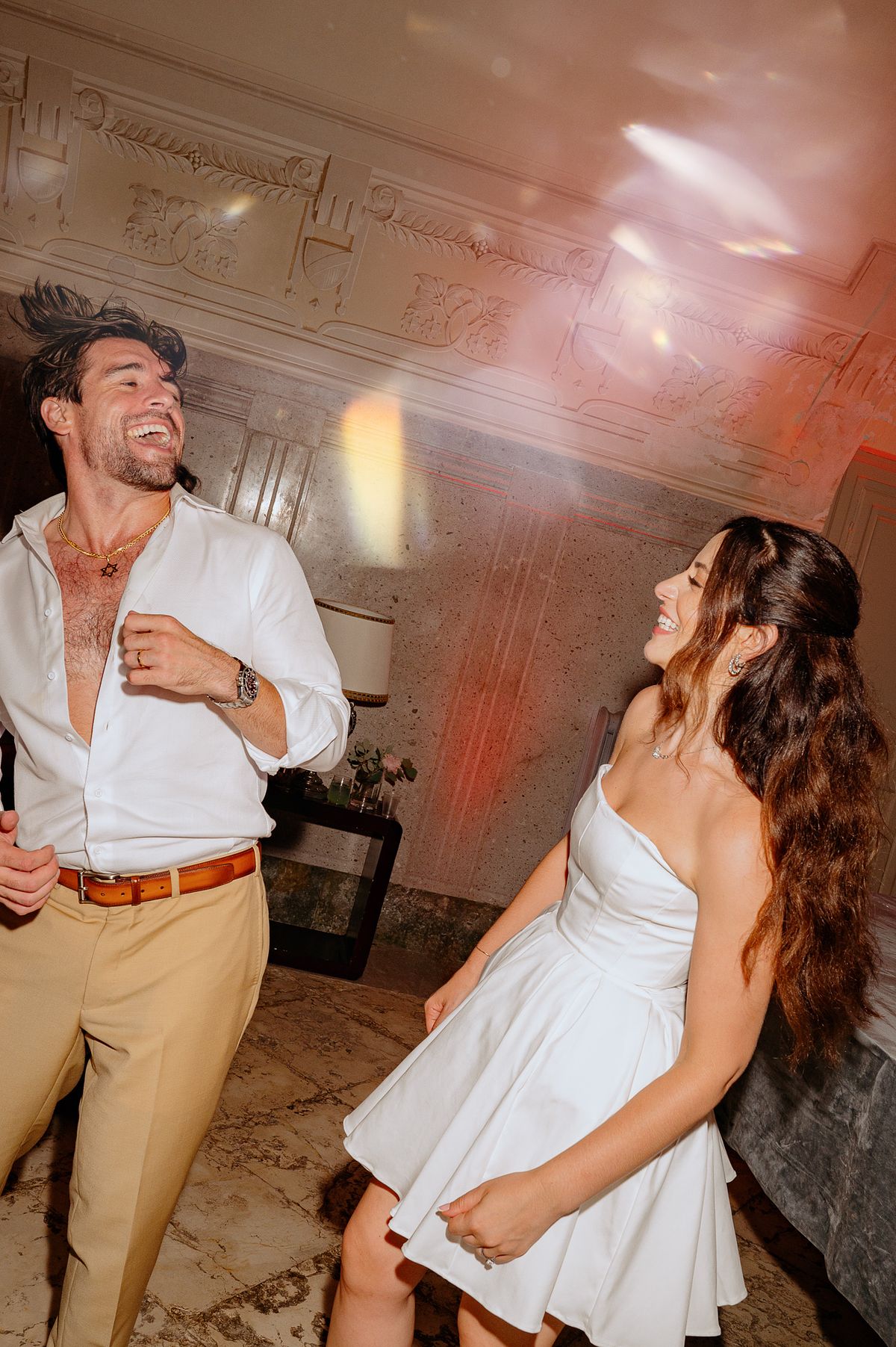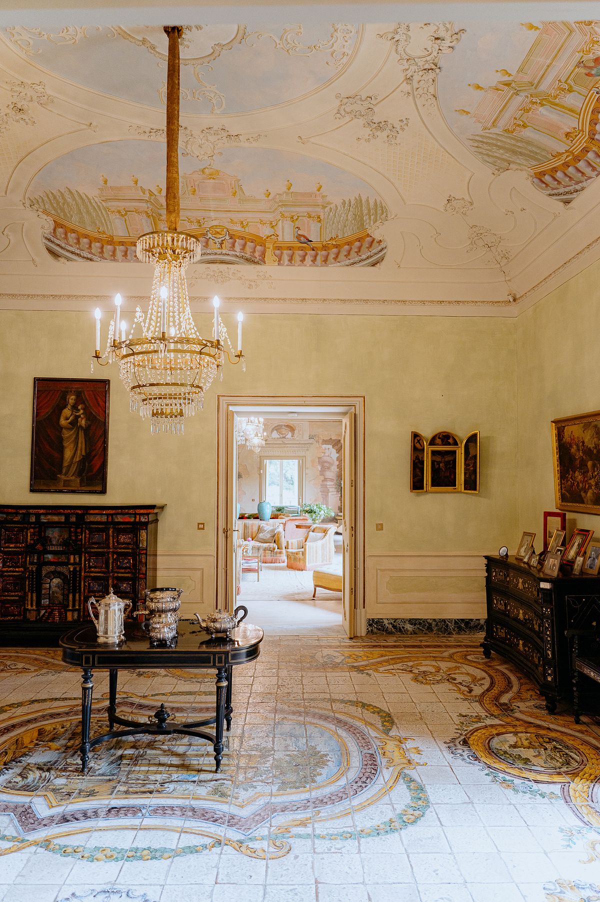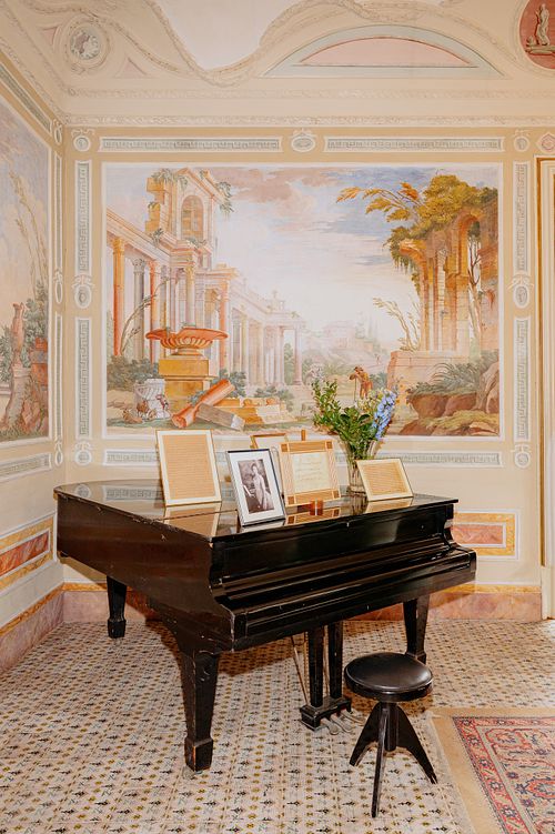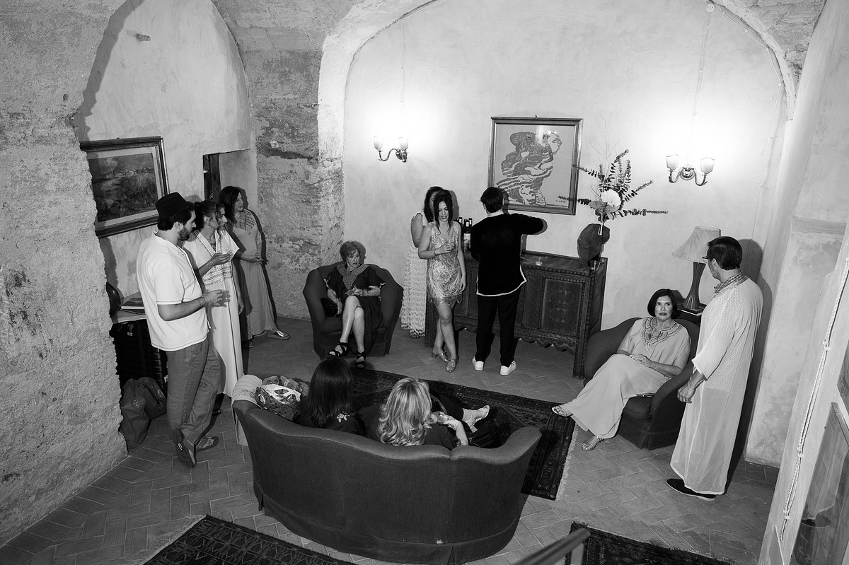 Their first portraits as a married couple were taken while guests enjoyed live music and Italian pastries, all as they prepared for the evening's dinner.