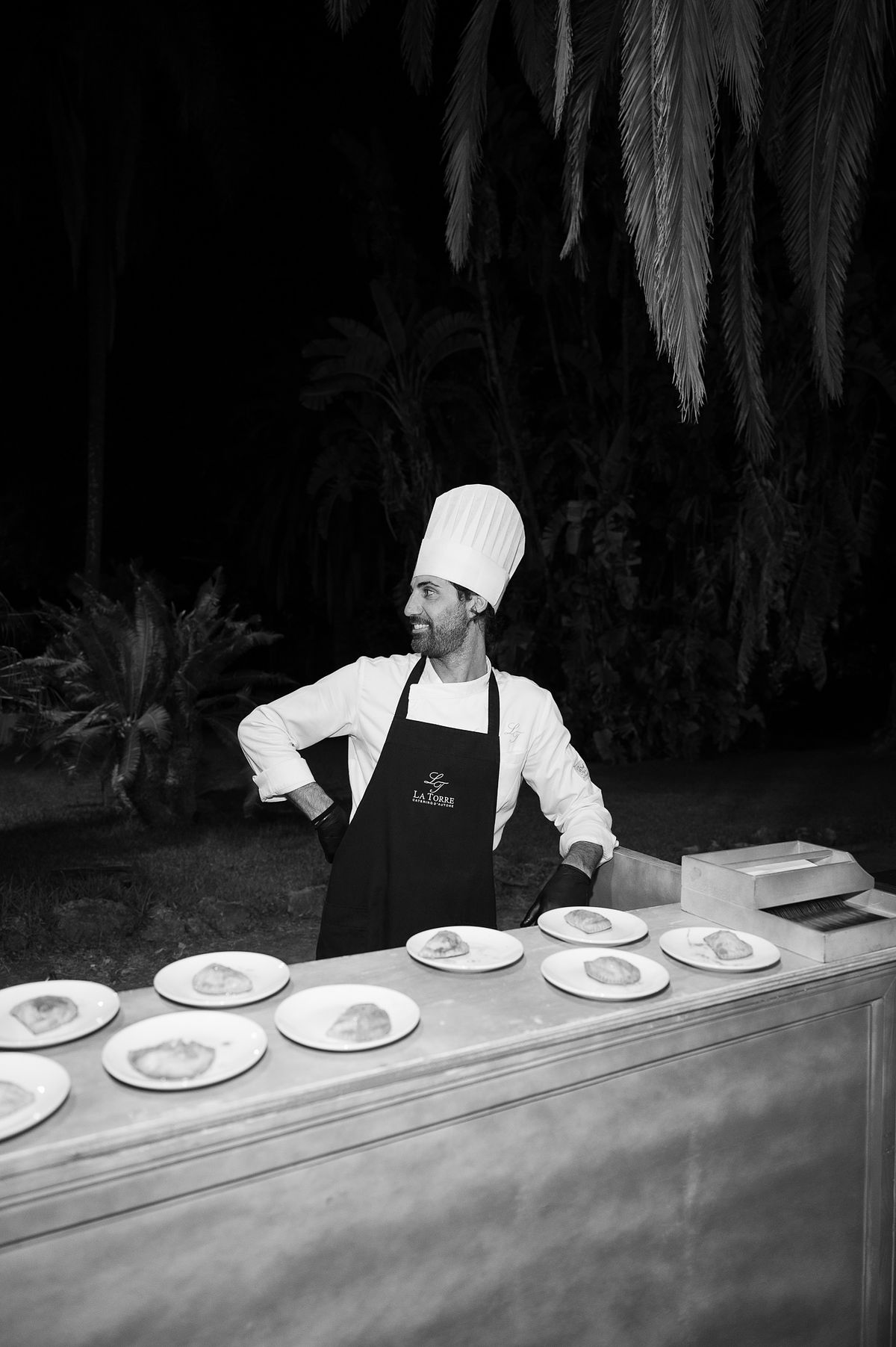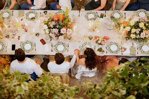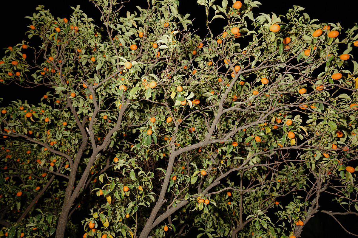 The magical dinner under the stars was surrounded by vibrant kumquat trees, which added a sweet fragrance and a charming touch to the night.