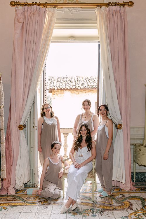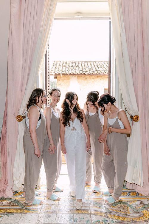 The bride and her bridesmaids had a relaxed and enjoyable morning getting ready, with plenty of laughs and easygoing moments.