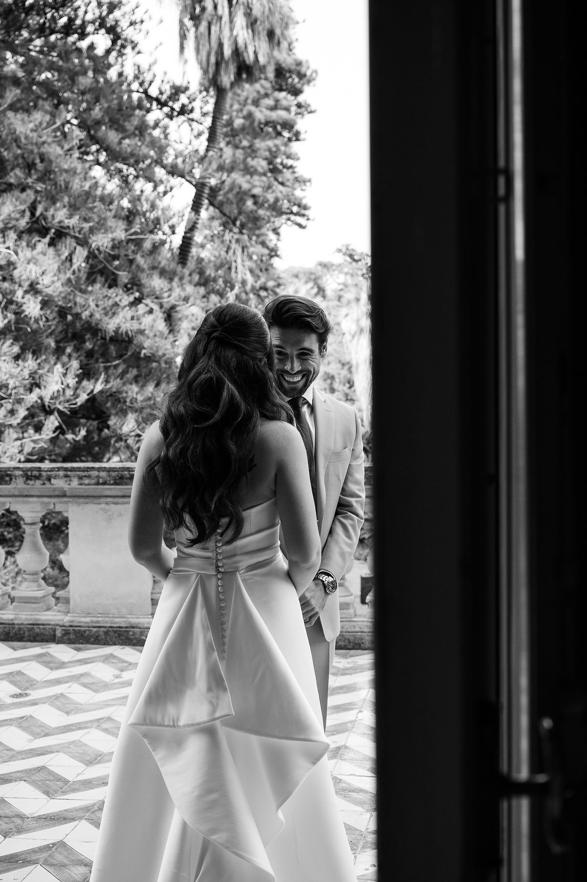 Before the ceremony, the bride and groom shared a private first look on the balcony before meeting all their family and friends.