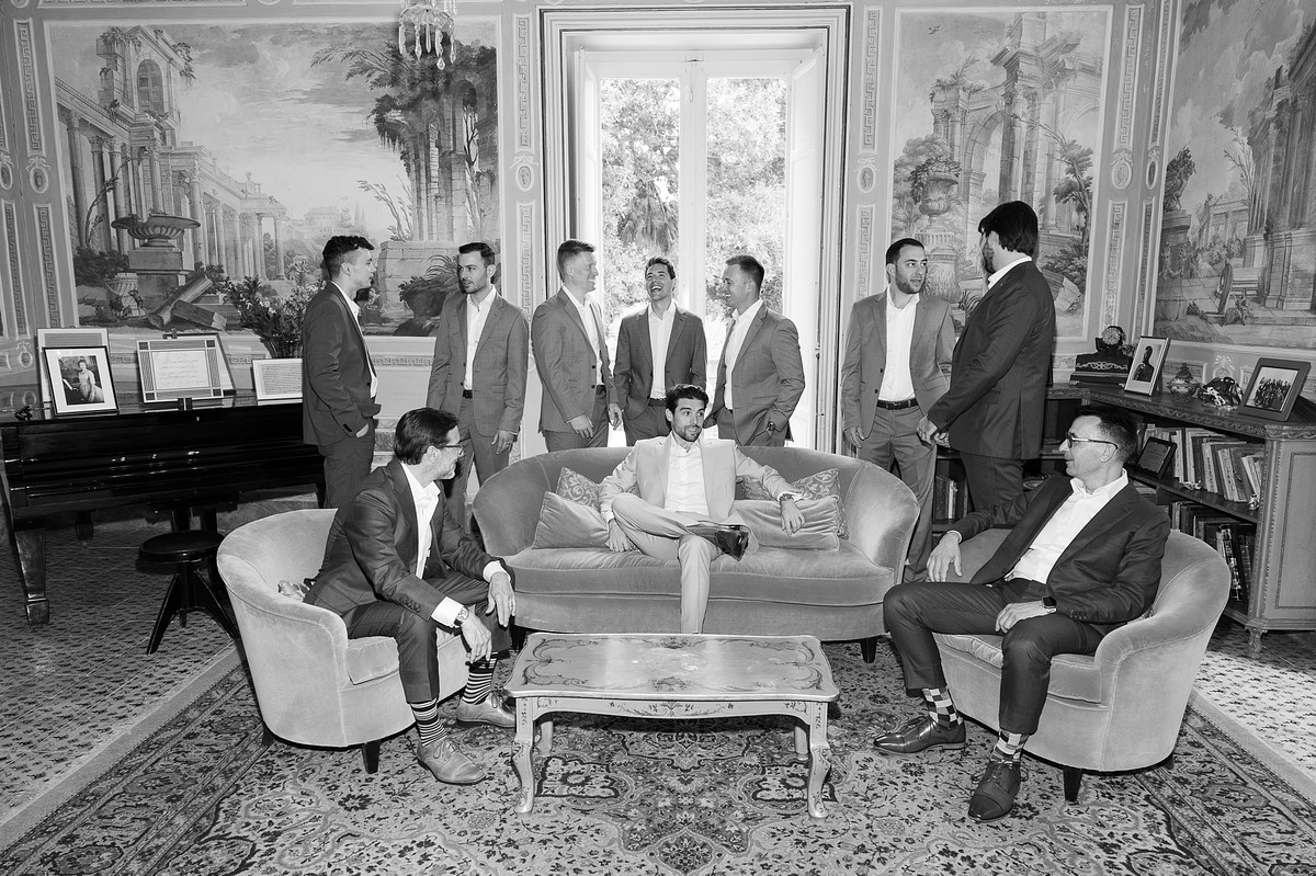 The groom and his groomsmen had a great time getting ready together.