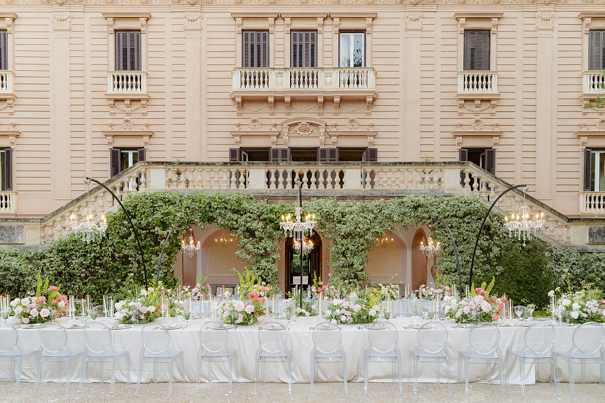 Villa Tasca is a truly charming historic venue built in the 19th century, chosen by the couple for its blend of classic elegance and beautiful outdoor spaces. Inside, the grand rooms showcase period details, while the gardens outside, featuring a mix of Italian and English landscaping styles, that created a heartwarming atmosphere for their incredible wedding day.